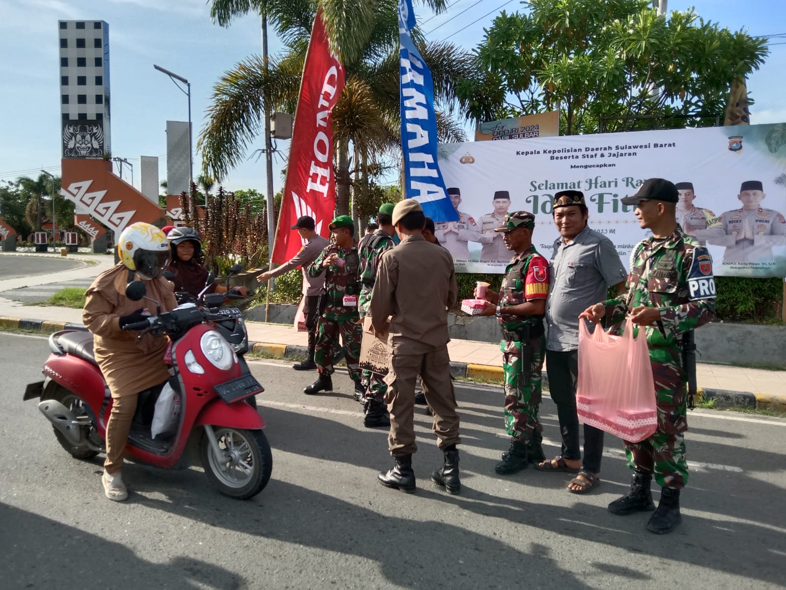 Kegiatan tersebut berlangsung di tiga tempat, yakni depan pos pelayanan terpadu Idul Fitri bundaran Smart, Pos Pengamanan Anjungan Vopasanggayu Jalan Andi Bandaco, serta Pos Pengamanan perbatasan Kabupaten Pasangkayu dengan Kabupaten Donggala, Desa Sarude, Kecamatan Sarjo Kabupaten Pasangkayu, kamis (20/4/2023).