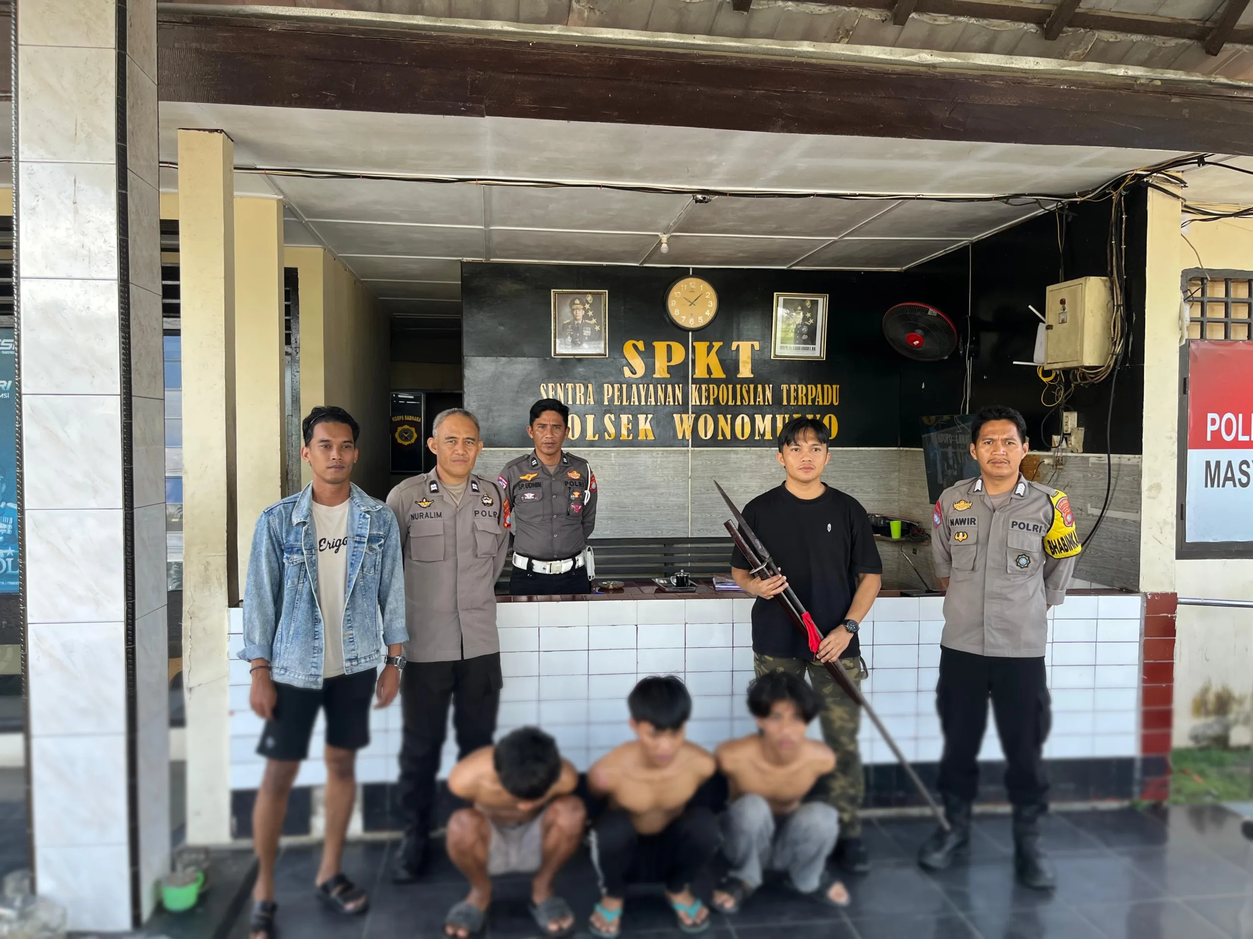 Beberapa orang diamankan ke Mapolsek Wonomulyo Identitas pemuda yang membawa sajam dan Obat terlarang jenis Boje yaitu Sahrisal Fahlevi alias Levi, (18)alamat Desa Banua Baru Kecamatan Wonomulyo (Membawa boje), Muh. Fadil alias Fadil (18) Desa Rumpa Kecamatan Wonomulyo (Membawa Samurai katana), R (17) Desa Sugihwaras Kecamatan Wonomulyo (Membawa tombak) guna dimintai keterangan lebih lanjut, sementara barang bukti berupa senjata tajam dan Obat terlarang turut disita.