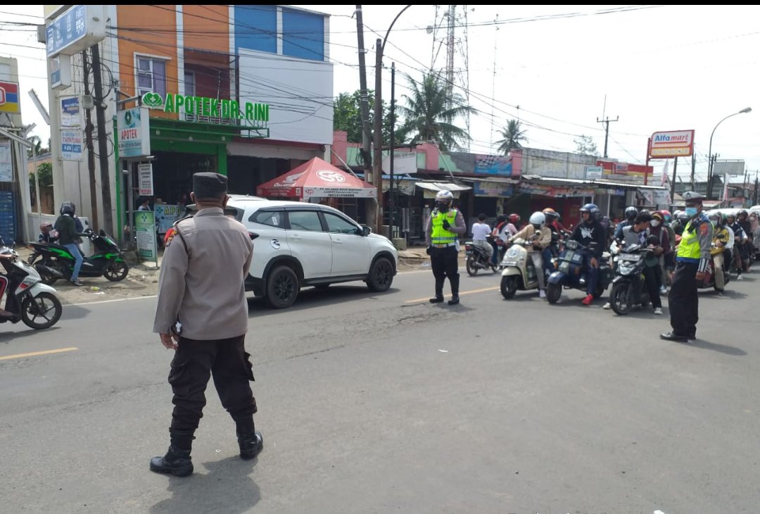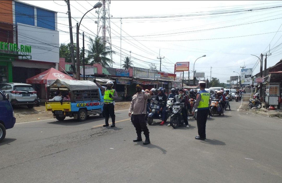 LEBAK | Personil Polsek Warunggunung dibantu dengan Sat Lantas Polres Lebak melaksanakan pengaturan lalu lintas di simpang Sampay Antisipasi kemacetan masyarakat yang akan berpergian.Rabu (04/05/2022)