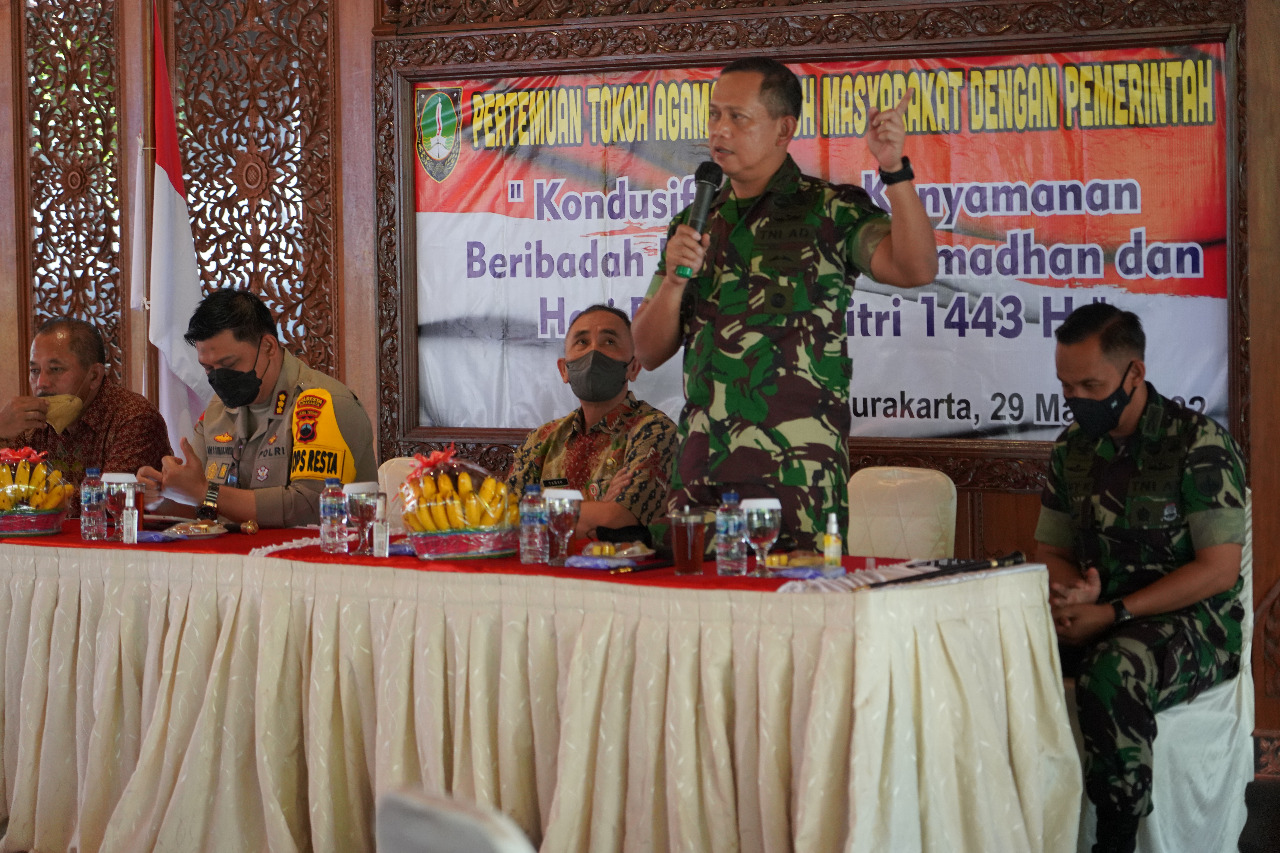 Kegiatan yang mengambil tema “Kondusifitas dan Kenyamanan Beribadah Bulan Suci Ramadhan dan Hari Raya Idul Fitri 1443 H” ini merupakan silaturahmi antara TNI Polri, Pemerintah Kota Surakarta dan para Tokoh Agama serta Tokoh Masyarakat guna mempersatukan persepsi pelaksanaan Sholat Tarawih dan Sholat Idul Fitri.