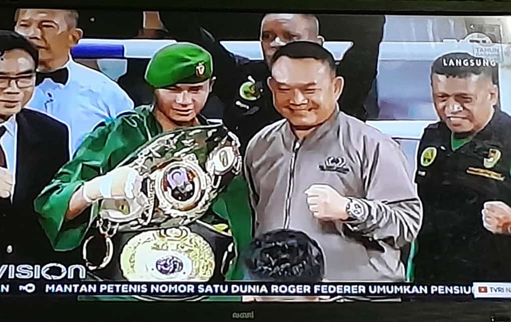 JAKARTA | Sertu Ghalatry Sonny, petinju Profesional Kelas Bulu Junior 55,3 Kg semalam di Gedung Balai Sarbini Jakarta Selatan, berhasil mengharumkan nama Bangsa dan Negara setelah bertanding Fight selama 8 ronde melawan Shanon Chonkam petinju andalan Negara Gajah Putih Thailand dengan meraih Gelar Juara Internasional Sabuk Emas Asian Boxing Federation (ABF) dan Sabuk Emas Kasad 2022.