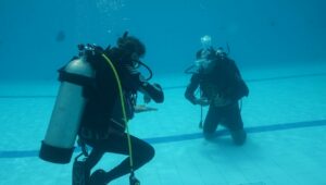JAKARTA | Dalam rangka mengikuti sertifikasi selam One Star (A1) Pejabat Utama (PJU) Korps Marinir mempertajam materi Latihan Keterampilan Kolam (LKK) yang dilaksanakan di kolam renang Usman Harun Jalan KKO Cilandak Jakarta Selatan, Selasa (20/09/2022).