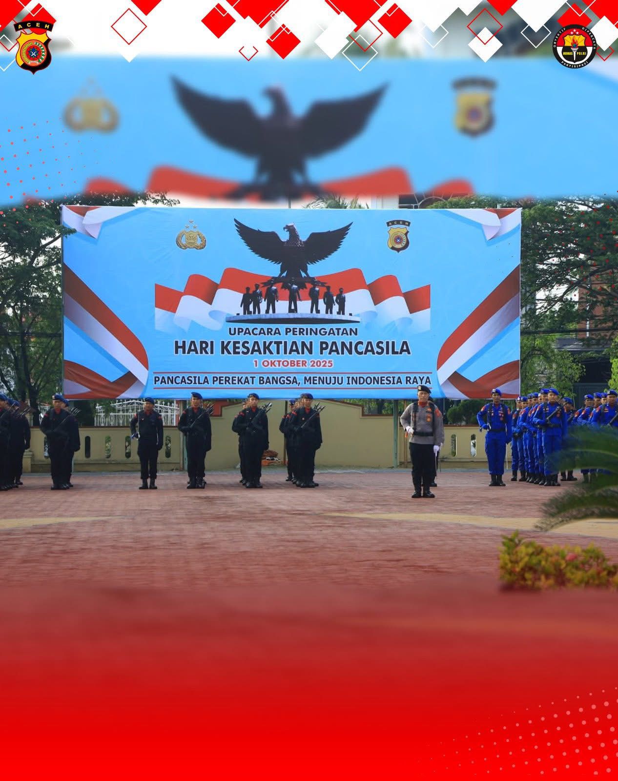 Banda Aceh — Polda Aceh menggelar upacara peringatan Hari Kesaktian Pancasila Tahun 2025 di Lapangan Mapolda Aceh, Rabu, 1 Oktober 2025. Upacara yang berlangsung khidmat itu dipimpin Kapolda Aceh Irjen Pol. Drs Marzuki Ali Basyah MM, serta diikuti pejabat utama dan personel.