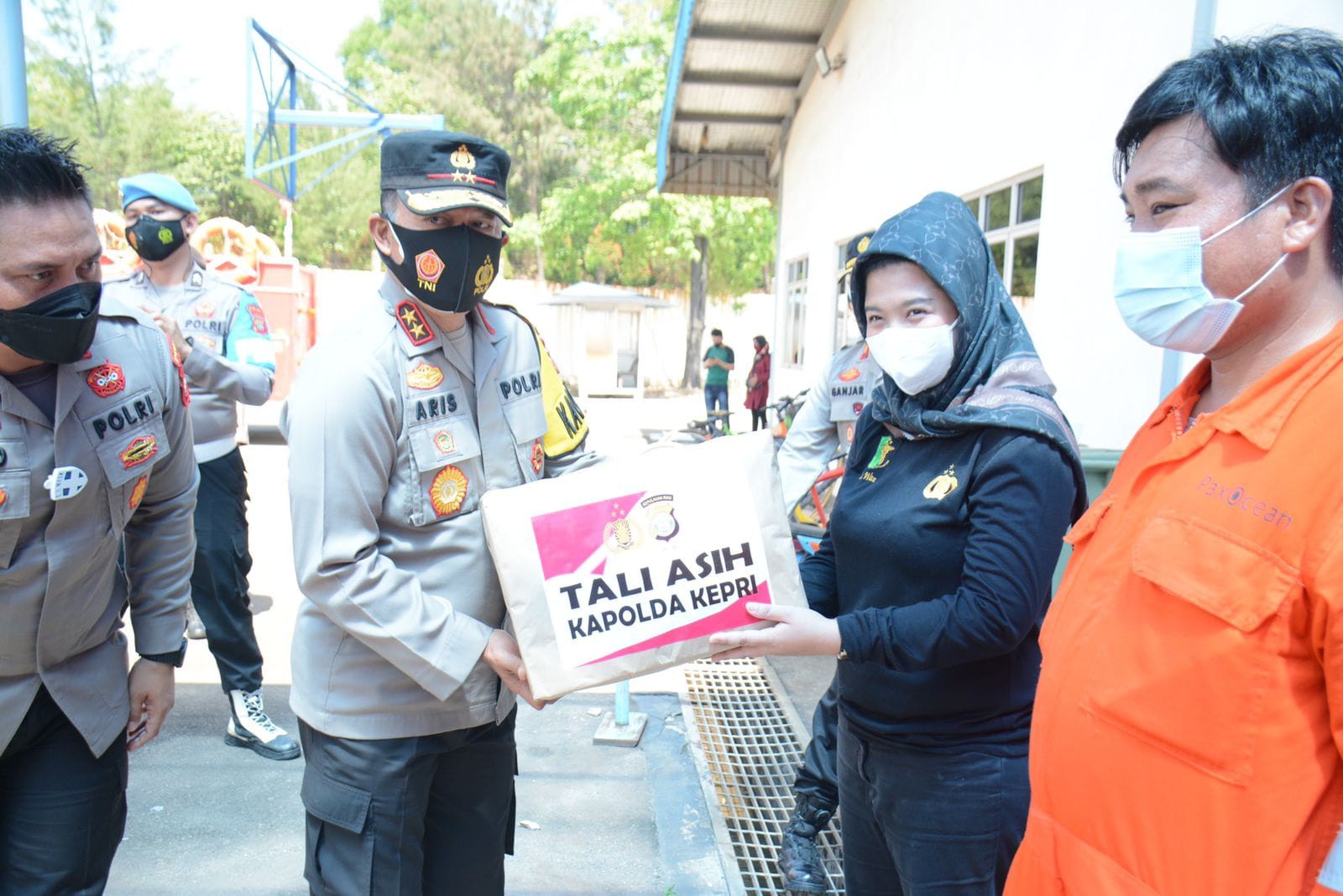 Sebelum kegiatan virtual dengan Kapolri berlangsung, Kapolda Kepri memberikan bantuan sembako kepada perwakilan peserta vaksinasi di PT.Pax Ocean Batu Aji Batam.