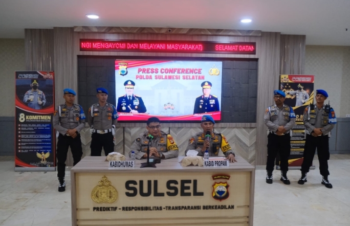 infoindonesiainews.com | SULSEL – Kabidhumas Polda Sulsel Kombes Pol Komang Suartana bersama Kabid Propam Polda Sulsel Kombes Pol Zulham Effendy menggelar Konferensi Pers terkait berita di salah satu media online yang menyatakan bahwa salah satu oknum anggota Polda Sulsel Bripda FN melakukan pemerkosaan berkali-kali terhadap seorang wanita di Makassar.