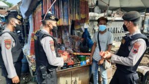 PEKALONGAN | Demi menjaga ketertiban dan kekhusukan masyarakat dalam beribadah di bulan ramadhan, Tim Quick Respons Sat Samapta rutin melaksanakan kegiatan patroli di kawasan pasar dan pertokoan dengan sasaran para pedagang petasan.