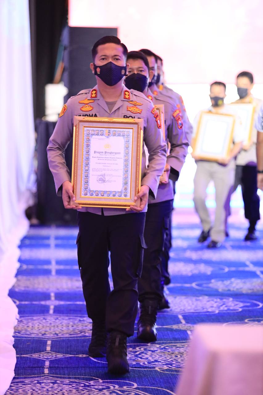 “Pemberian penghargaan tersebut diserahkan langsung oleh Kapolri Jenderal Polisi Listyo Sigit Prabowo dalam Musrenbang Polri Tahun 2022 di ruang rapat Tribrata, Jakarta Selatan, Selasa kemarin,” katanya Rabu (15/6/2022).