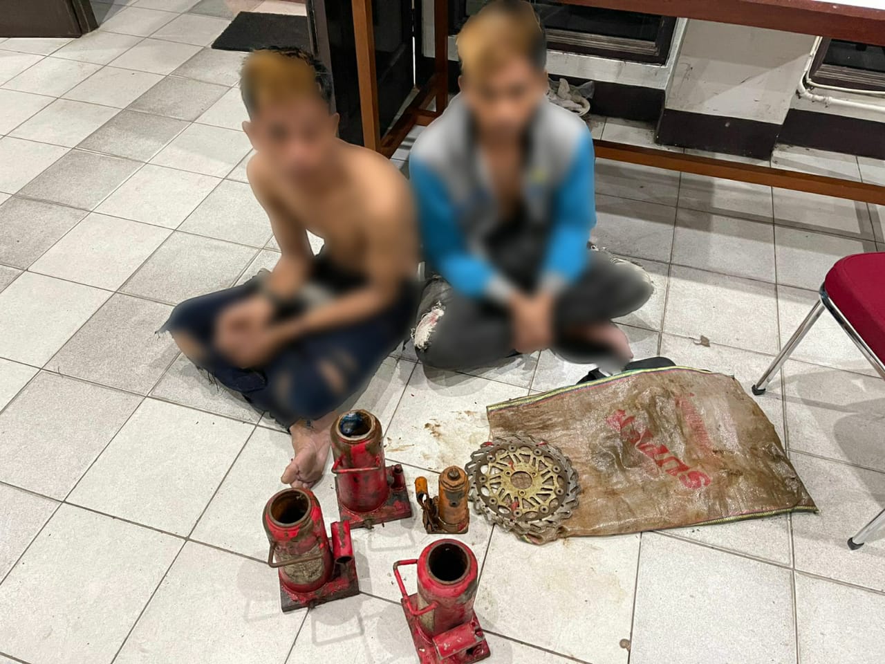 “lalu pelapor langsung keluar rumah melihat ada 2 (dua) orang yang tidak dikenal sedang mengambil 4 (empat) buah dongkrak mobli dan 1 (satu) buah cakram motor sudah dimasukan kedalam karung berwarna putih , kemudian kedua orang pelaku tersebut langsung lari setelah pelapor berteriak “Maling” dan mengejarnya pelaku dibantu warga sekitar, dan atas kejadian tersebut pelapor melaporkan kejadian ini ke Poles Kubu Raya dan Korban mengalami kerugian sekitaran Rp 5.000.000 (lima juta rupiah)”ujar kasat.