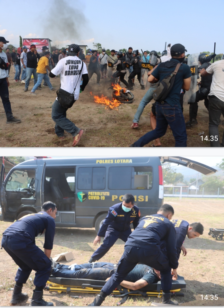 infoindonesiainews.com | LOMBOK UTARA – Polda NTB, Polres Lombok Utara menggelar kegiatan simulasi sistem pengamanan kota (Sispamkota) dalam rangka menghadapi Pemilu serentak 2024. Kegiatan simulasi yang digelar pada hari sabtu, 7/10/2023. pagi, di Lapangan umum Gondang Kecamatan Gangga KLU.