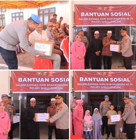 ACEH – Dalam rangka menyambut Hari Bhayangkara ke-79 tahun 2025, Kepolisian Resor Subulussalam menyalurkan bantuan sosial kepada Purnawirawan Polri, Warakawuri dan Anak Yatim bertempat di mako Polres Subulussalam, Jumat, 27 Juni 2025.