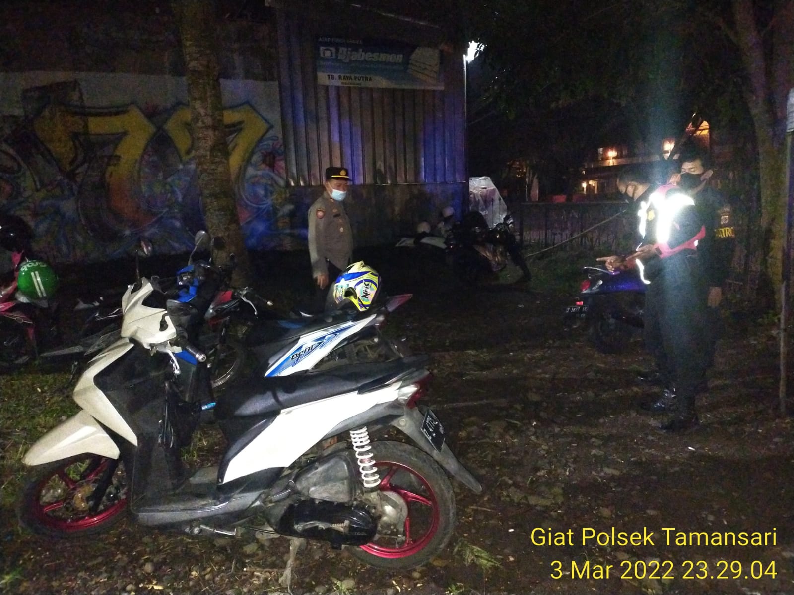 TASIKKOTA | Polres Tasikmalaya Kota gencarkan Patroli dan Razia guna Antisipasi ulah geng motor yang meresahkan masyarakat, hal ini dilakukan Wilayah Rayon 3 meliputi Wilayah Hukum Polsek Kawalu, Polsek Tamansari dan Polsek Cibeureum, Kamis malam hingga jumat dini hari (04/03/2022).