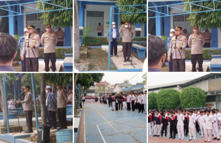 BEKASI | Kapolres Metro Bekasi Kota Kombes Pol Hengki, S.I.K, M.H melaksanakan kegiatan penyuluhan dalam pembinaan kepada pelajar terkait kenakalan remaja, miras, menolak ajakan tawuran yang dilaksanakan di Yayasan Pengembangan Lembaga Bina Karya Mandiri sekolah SMK Bina Karya Mandiri 2, jalan Pengasinan tengah No 99, Kel. Pengasinan, Rawa Lumbu, Selasa (11/10/2022).