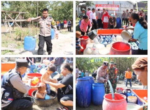 ‘’Untuk mobil patroli yang telah di modifikasi dan motor bronjong polisi berisi air bersih, mengikuti penyaluran air bersih di masing-masing wilayah Polseknya,’’ ungkap Kapolres.