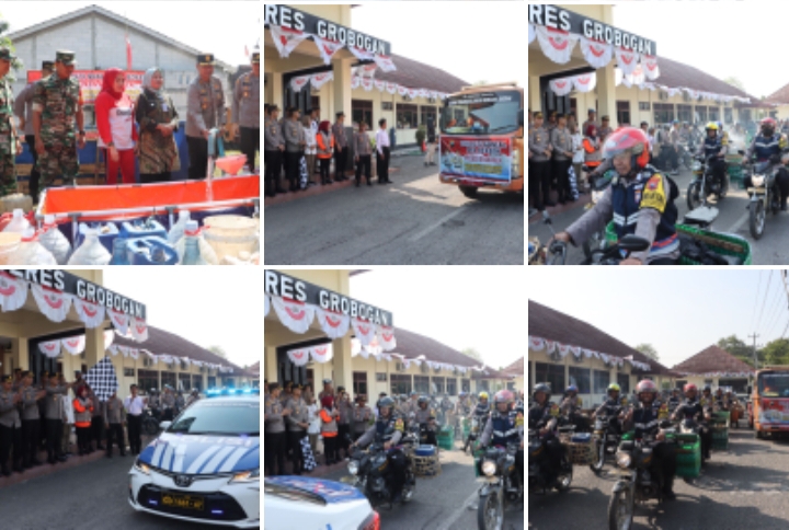 ‘’Hari ini 1 mobil water cannon, 4 mobil tangki milik BPBD dan PDAM, 4 mobil patroli serta 50 motor bronjong Bhabinkamtibmas kami kerahkan untuk membantu mengatasi kekeringan yang terjadi di Kabupaten Grobogan,’’ jelas Kapolres Grobogan dalam keterangan tertulis, Senin (31/7/23).
