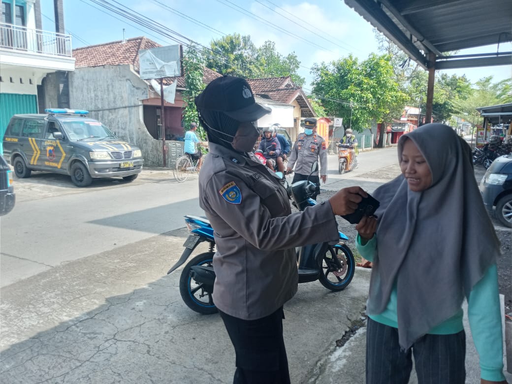 Wakapolsek Cepiring, bersama Kanit Binmas, dan anggota piket jaga melaksanakan imbauan kepada warga masyarakat yang melintas di Jalan Menur Desa Karangayu.
