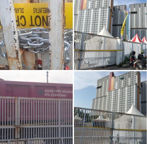 INFOINDONESIAINEWS.COM | JAKARTA – pintu gerbang masuk arena Bazzar UMKM yang bertempat di Wisma Atlet Kemayoran disegel menggunakan rantai besi dengan tambahan police line oleh PPKK Kemayoran, padahal pada hari yang sama akan berlangsung kegiatan Jumat Curhat yang dilakukan oleh Polres Metro Jakarta Pusat.