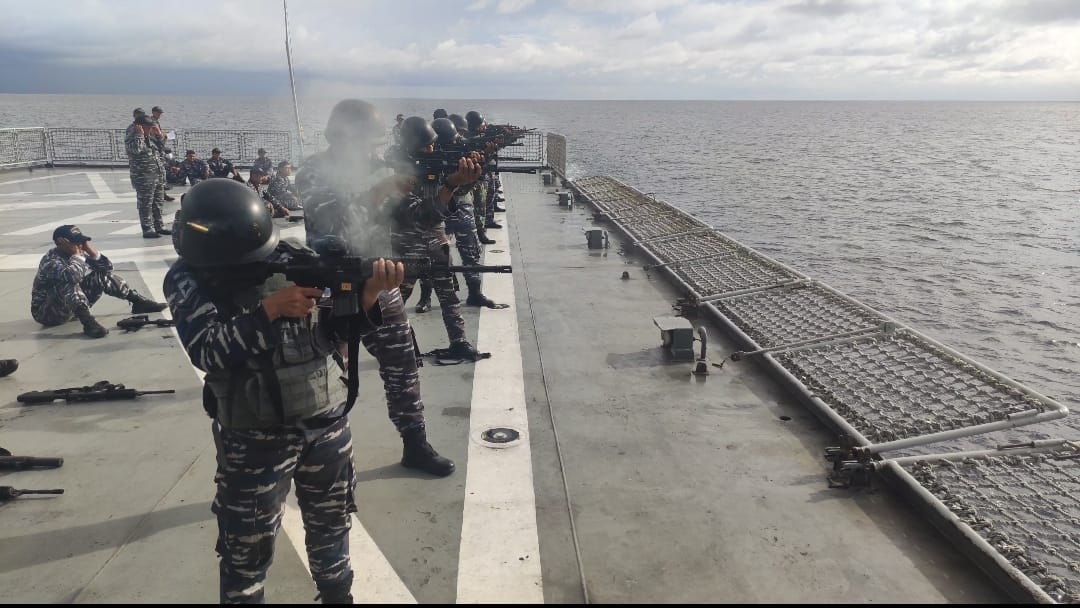 Latihan menembak tersebut dipimpin langsung Komandan KRI Tarakan-905 Letkol Laut (P) Cokorda G.P. Pemayun, yang melatih prajuritnya melaksanakan penembakan dengan menggunakan Meriam 20 mm, Meriam 12.7 mm, GPMG dan Senjata Ringan M4.