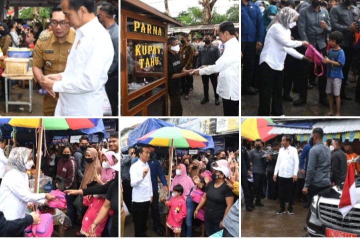 Selain menyapa, Presiden juga menyerahkan bantuan modal kerja kepada para pedagang kaki lima (PKL) dan bantuan tunai langsung kepada para pedagang yang ada di pasar tersebut. Tidak hanya itu, Ibu Iriana turut memberikan bingkisan kepada anak-anak yang ada di pasar tersebut.