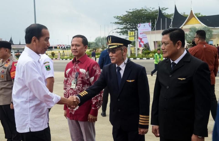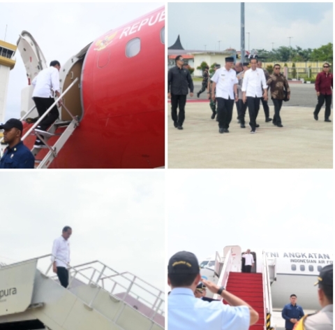 Presiden Jokowi dan rombongan tiba di Bandara Internasional Minangkabau, Kabupaten Padang Pariaman, sekitar pukul 12.11 WIB.