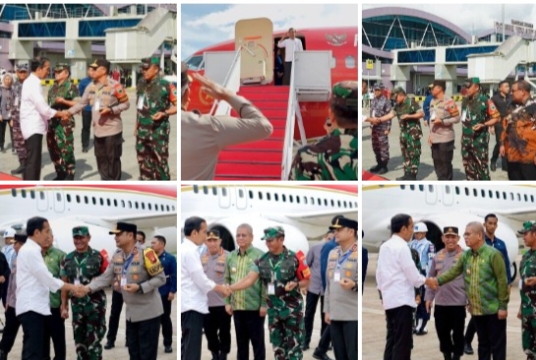 Presiden dan rombongan bertolak dari Bandar Udara Domine Eduard Osok, Kota Sorong, Provinsi Papua Barat, sekitar pukul 15.05 WIT atau 13.05 WIB.