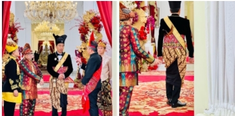 JAKARTA – Presiden Joko Widodo mengenakan baju daerah Ageman Songkok Singkepan Ageng. Pada hari Kamis, (17/08/2023).
