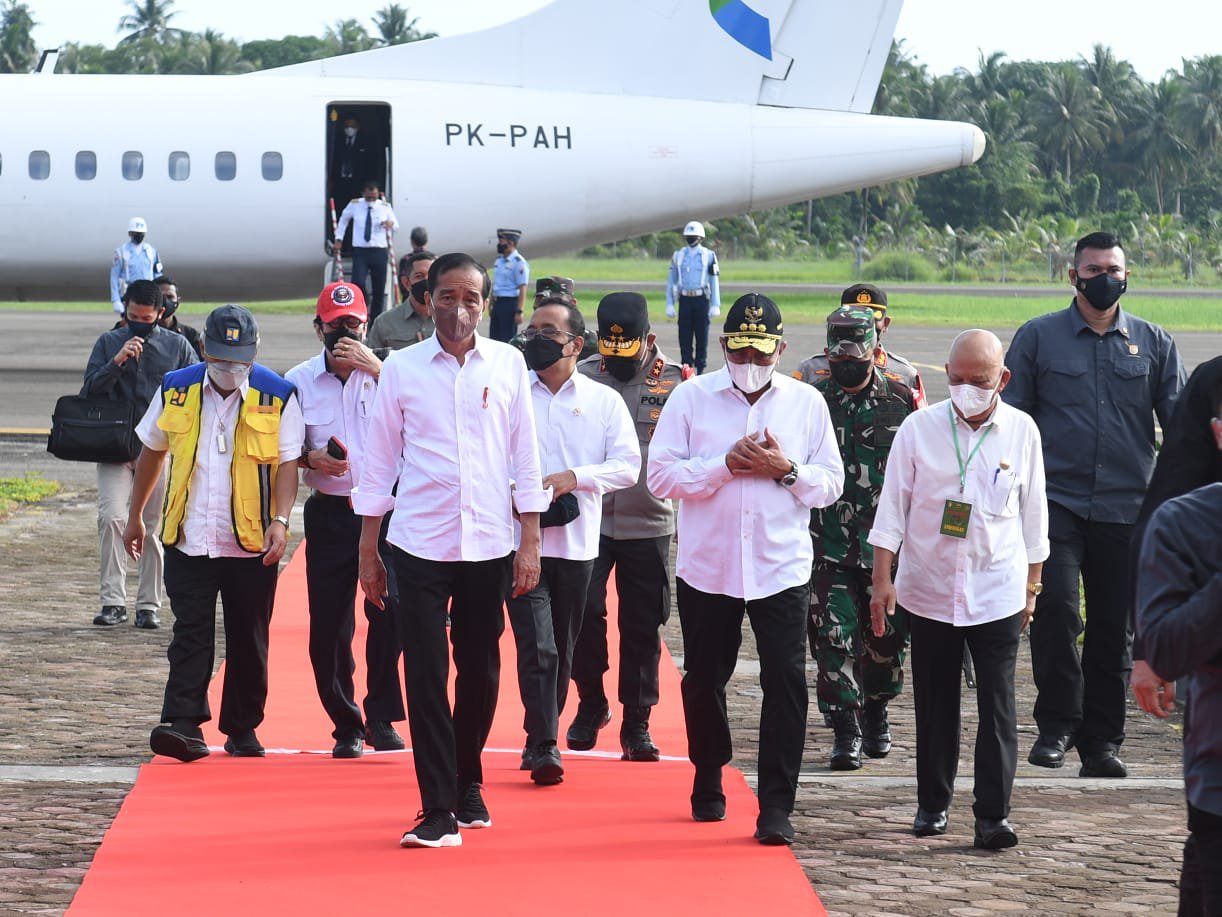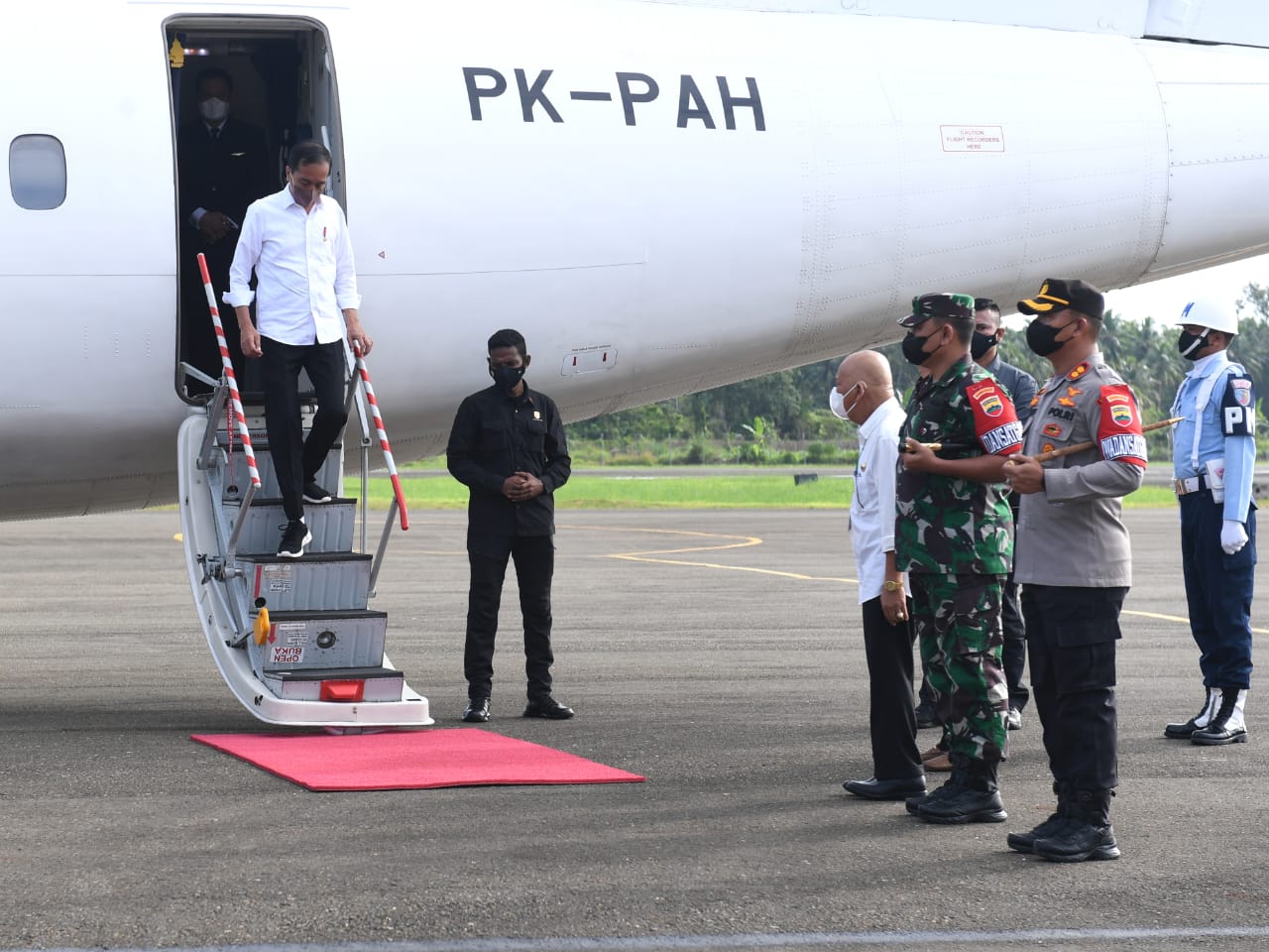 SUMATERA UTARA | Presiden Joko Widodo tiba di Bandar Udara Binaka, Kota Gunungsitoli, Provinsi Sumatera Utara, pada hari Rabu, 6 Juli 2022. Setelah menempuh penerbangan selama satu jam, Presiden tiba pukul 08.20 WIB disambut Wali Kota Gunungsitoli Lakhomizaro Zebua.