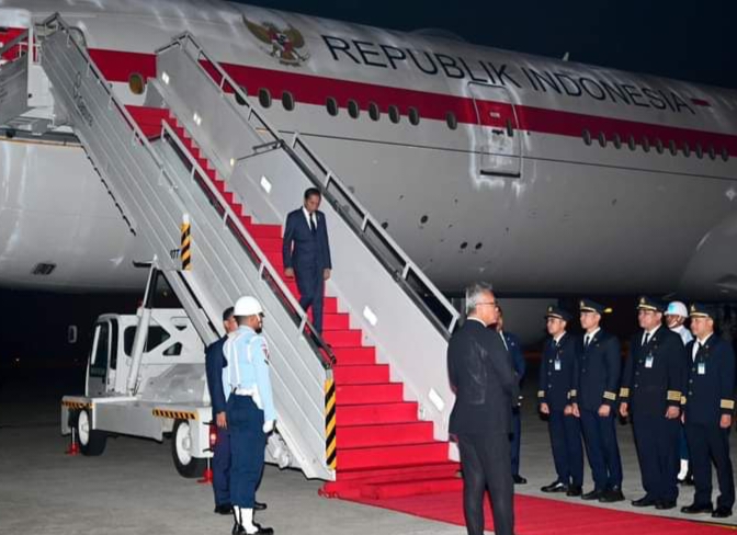 DELI SERDANG, SUMATERA UTARA | Usai melakukan lawatan ke sejumlah negara di benua Afrika, Presiden Joko Widodo tiba di Tanah Air, pada Sabtu, 25 Agustus 2023. Pesawat Garuda Indonesia-1 yang membawa Presiden beserta rombongan tiba di Bandar Udara Internasional Kualanamu, Kabupaten Deli Serdang, Provinsi Sumatra Utara, sekitar pukul 05.30 WIB.
