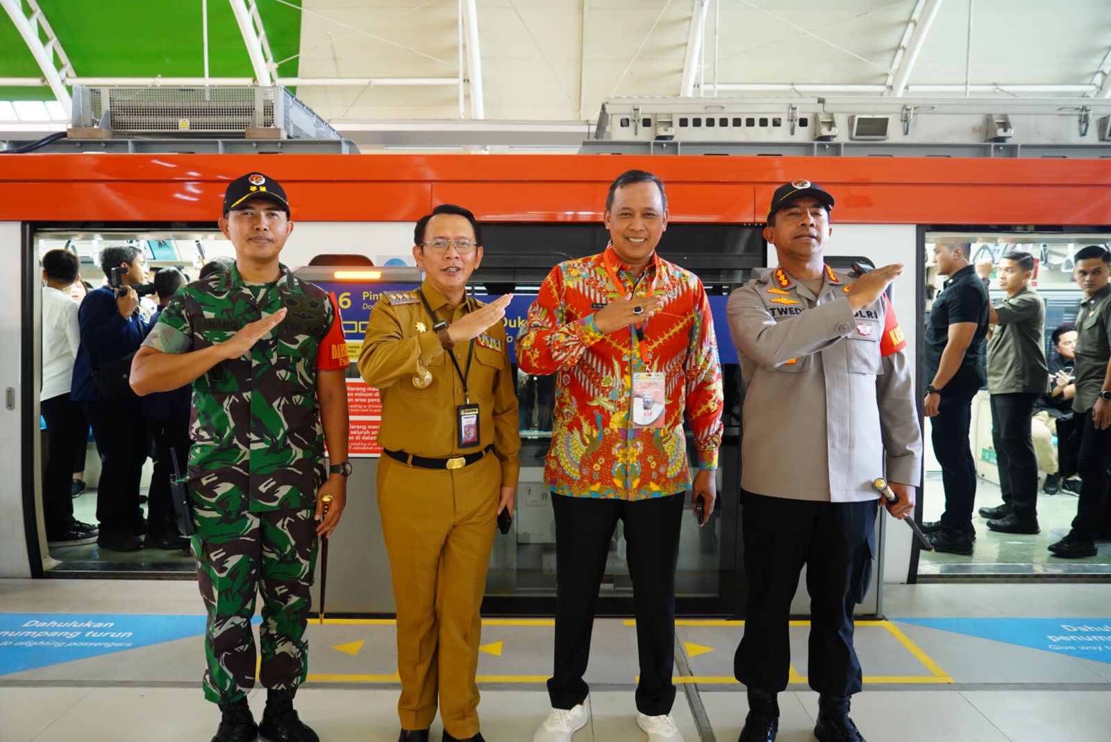 Kunjungan Kerja Presiden RI Ir. H. Joko Widodo dalam rangka Uji Coba LRT di Stasiun LRT Jatimulya Dari Pantauan awak media, ada sejumlah menteri yang mendampingi Yakni, Menteri Perhubungan (Menhub) Budi Karya Sumadi, Menteri BUMN Erick Thohir, serta Pj Gubernur DKI Jakarta Heru Budi Hartono. Sementara itu, beberapa artis seperti Reisa Broto Asmoro, Cak Lontong, Kirana Larasati, Chelsea Islan, Ayu Dewi, Widi AB3, Yuni Shara, Nirina Zubir, Lukman Sardi, Desta, dan Ari Lasso.