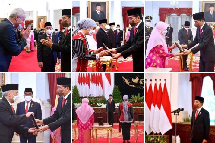 JAKARTA | Presiden Joko Widodo menganugerahkan gelar pahlawan nasional kepada lima tokoh dari berbagai daerah yang telah berjasa bagi bangsa dan negara. Penyerahan penghargaan yang dilakukan dalam rangka Hari Pahlawan tahun 2022 tersebut digelar di Istana Negara, Jakarta, pada Senin, 7 November 2022.