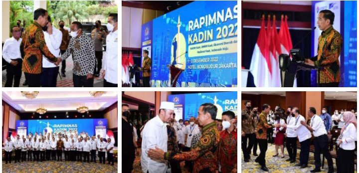 JAKARTA | Presiden Joko Widodo secara resmi membuka Rapat Pimpinan Nasional (Rapimnas) Kamar Dagang dan Industri (KADIN) Tahun 2022, yang digelar di Flores Ballroom, Hotel Borobudur, Jakarta, pada Jumat, 2 Desember 2022. Dalam sambutannya, Kepala Negara menegaskan bahwa saat ini Indonesia sedang berada dalam puncak kepemimpinan global, utamanya dari sisi ekonomi.