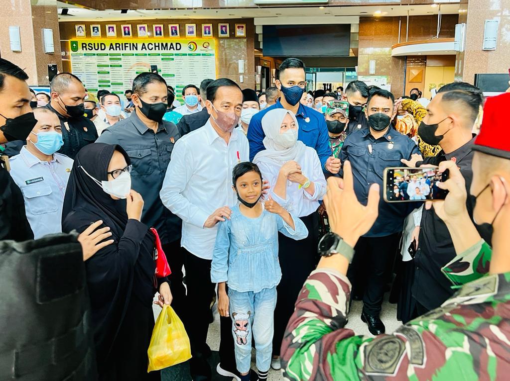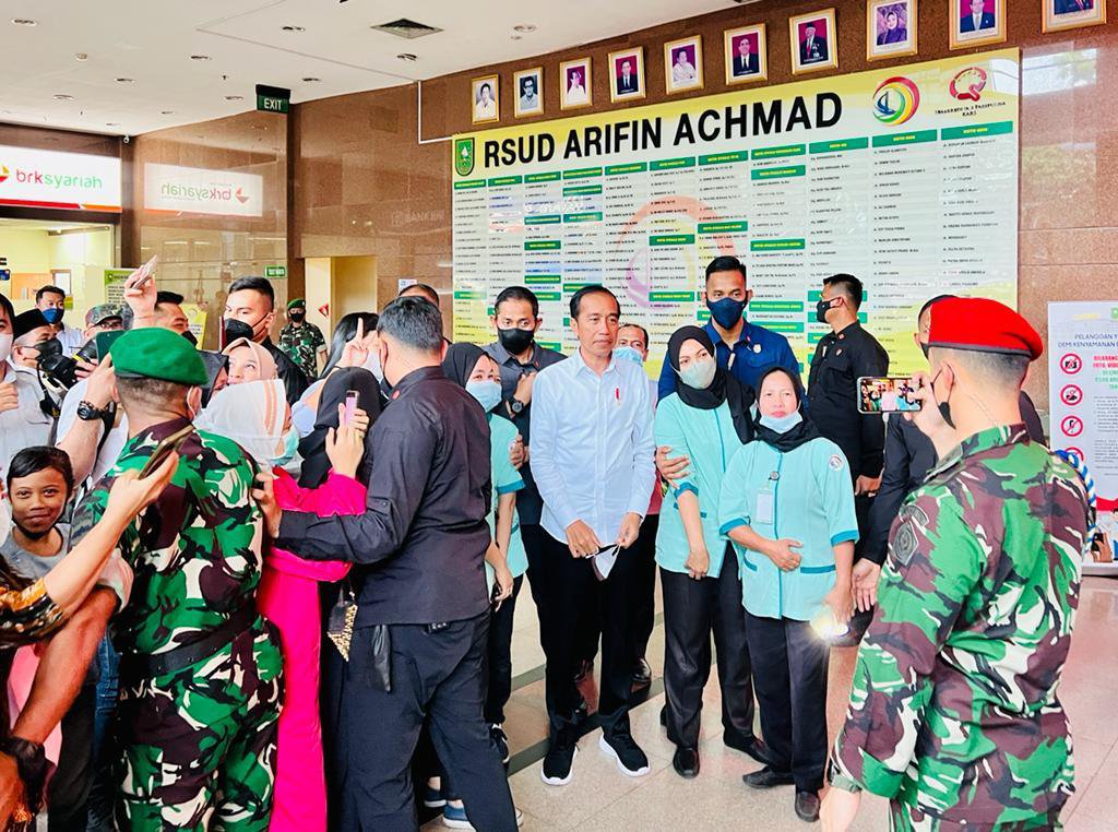 KAMPAR, PEKANBARU | Presiden Joko Widodo meninjau aktivitas pelayanan BPJS Kesehatan di Rumah Sakit Umum Daerah (RSUD) Arifin Achmad, Kota Pekanbaru, Provinsi Riau, pada Rabu, 4 Januari 2023. Dalam keterangannya usai meresmikan Tol Pekanbaru-Bangkinang, Presiden menjelaskan bahwa kunjungan tersebut untuk memastikan pelayanan BPJS Kesehatan di rumah sakit berjalan baik.
