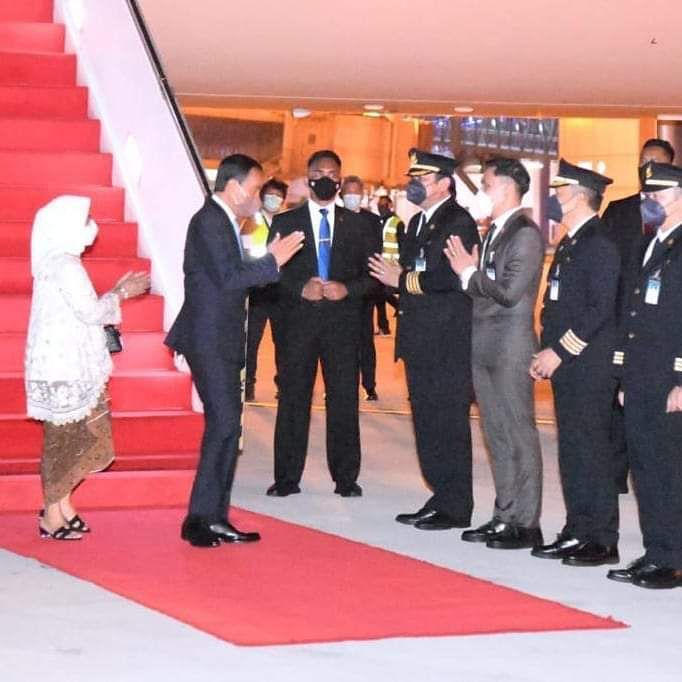 TANGGERANG | Presiden Joko Widodo dan Ibu Iriana Joko Widodo beserta rombongan tiba di Indonesia pada Jumat dini hari, 29 Juli 2022, setelah melakukan kunjungan kerja ke tiga negara di kawasan Asia Timur yaitu Republik Rakyat Tiongkok (RRT), Jepang, dan Korea Selatan. Presiden Jokowi beserta rombongan tiba di Bandara Internasional Soekarno-Hatta, Tangerang, Banten sekira pukul 02.00 WIB, setelah menempuh penerbangan selama lebih kurang tujuh jam dari Seoul Airbase Seongnam, Korea Selatan.