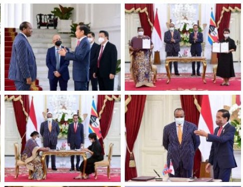 JAKARTA | Presiden Joko Widodo dan Raja Eswatini, Mswati III, menyaksikan penandatanganan nota kesepahaman atau MoU perkuatan kerja sama bilateral antara kedua negara di Istana Merdeka, Jakarta, Kamis, 25 Agustus 2022. MoU yang ditandatangani oleh Menteri Luar Negeri Indonesia Retno Marsudi dan Menteri Luar Negeri Kerajaan Eswatini Thulisile Dladla tersebut merupakan pintu pembuka kerja sama ekonomi antara Republik Indonesia dengan Kerajaan Eswatini.