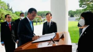 SEOUL |Presiden Joko Widodo mengunjungi Taman Makam Nasional di Seoul pada Kamis, 28 Juli 2022, untuk memberikan penghormatan. Kegiatan tersebut merupakan bagian dari rangkaian kunjungan resmi Presiden Jokowi ke Korea Selatan.
