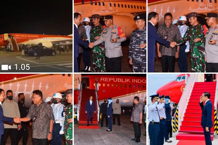 Setibanya di Bandara Internasional Sam Ratulangi, Kota Manado, Presiden disambut oleh Gubernur Sulawesi Utara Olly Dondokambey, Pangdam XIII/Merdeka Mayjen TNI Alfret Denny Djoike Tuejeh, Kapolda Sulawesi Utara Irjen Pol. Setyo Budiyanto, Danlantamal VIII/Manado Laksma TNI Nouldy J. Tangka, Danlanud Sam Ratulangi Marsma TNI Mohammad Satriyo Utomo, dan Kepala Kantor Kamla Zona Maritim Tengah Laksma Bakamla Hanarko Djodi Pamungkas.