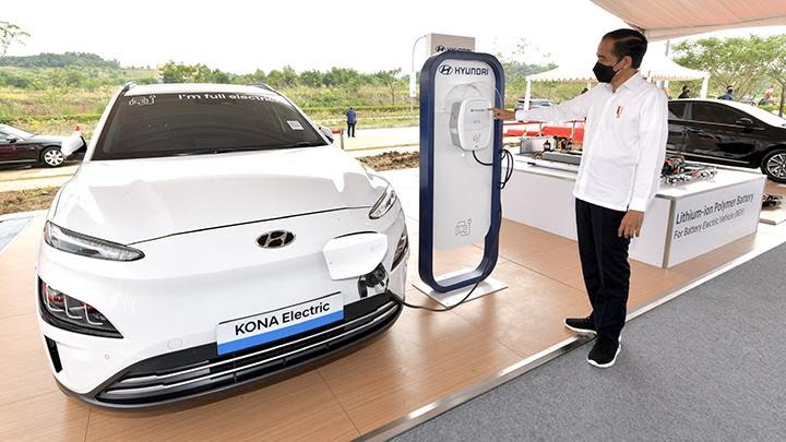 Presiden Joko Widodo meluncurkan mobil listrik pertama yang dirakit di Indonesia dalam kunjungan kerjanya ke pabrik PT Hyundai Motor Manufacturing Indonesia di Kabupaten Bekasi, Provinsi Jawa Barat, pada Rabu, 16 Maret 2022. Dalam sambutannya, Presiden menegaskan bahwa pemerintah akan selalu mendukung setiap investasi kendaraan listrik di Indonesia.