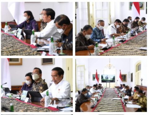 BOGOR | Presiden Joko Widodo menggelar rapat terbatas terkait Evaluasi Proyek Strategis Nasional (PSN) dengan sejumlah Menteri Kabinet Kerja di Istana Kepresidenan Bogor, Jawa Barat, pada Selasa, 6 September 2022. Kepala Negara meminta jajaran terkait untuk segera menyelesaikan seluruh PSN sebelum tahun 2024 mendatang.