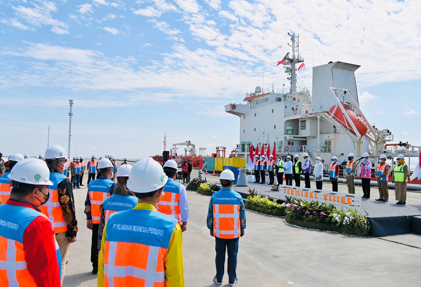 Turut mendampingi Presiden dan Ibu Iriana dalam acara tersebut yaitu Menteri Perhubungan Budi Karya Sumadi, Menteri PUPR Basuki Hadimuljono, Menteri BUMN Erick Thohir, Sekretaris Kabinet Pramono Anung, Gubernur Kalimantan Barat Sutarmidji, Wakil Gubernur Kalimantan Barat Ria Norsan, Bupati Mempawah Erlina, dan Direktur Utama Pelindo Arif Suhartono.