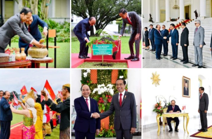 Setelah memperkenalkan masing-masing delegasi, Presiden Jokowi kemudian mengajak Presiden Nguyễn Xuân Phúc untuk berfoto bersama dan menandatangani buku tamu kenegaraan di Ruang Teratai. Setelah itu, acara dilanjutkan dengan penanaman pohon Merawan bersama oleh Presiden Jokowi dan Presiden Nguyễn Xuân Phúc.