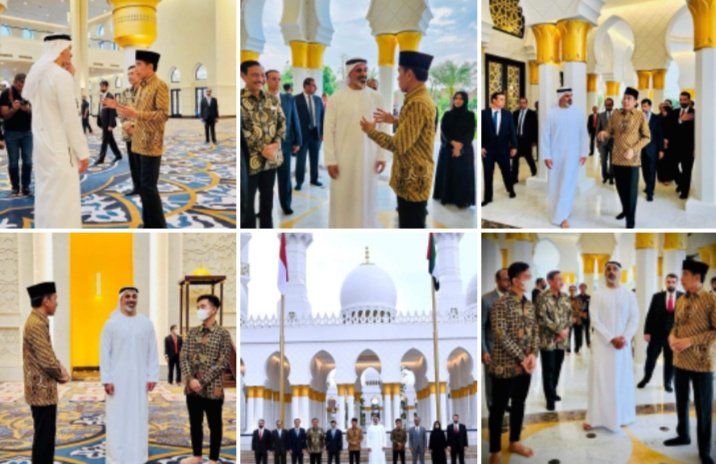 Presiden Jokowi dan Sheikh Khalid MBZ kemudian masuk ke dalam masjid dan melihat arsitektur serta desain interior masjid tersebut. Keduanya juga tampak berbincang dengan hangat dan akrab hingga pertemuan keduanya selesai.