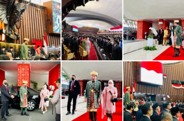 JAKARTA | Presiden Joko Widodo beserta Ibu Iriana Joko Widodo tiba di Ruang Rapat Paripurna, Gedung Nusantara MPR/DPR/DPD RI, Jakarta, pada Selasa, 16 Agustus 2022. Presiden dan Ibu Iriana tiba sekitar pukul 09.30 WIB dan bersama-sama dengan Wakil Presiden Ma’ruf Amin serta Ibu Wury Ma’ruf Amin memasuki Gedung Nusantara.