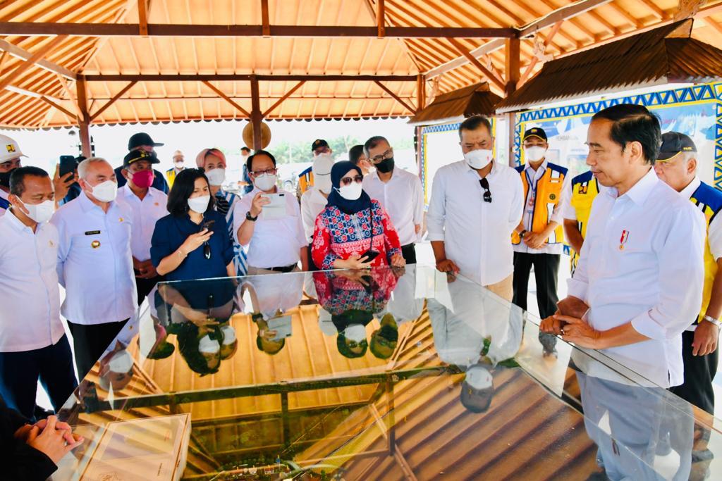 PENAJAM PASER UTARA | Presiden Joko Widodo meninjau progres pembangunan Bendungan Sepaku Semoi di Kabupaten Penajam Paser Utara, Provinsi Kalimantan Timur, pada Rabu, 22 Juni 2022. Bendungan yang memiliki kapasitas tampung 10 juta meter kubik tersebut merupakan salah satu bendungan yang dibangun pemerintah untuk penyiapan air baku di Ibu Kota Nusantara (IKN).