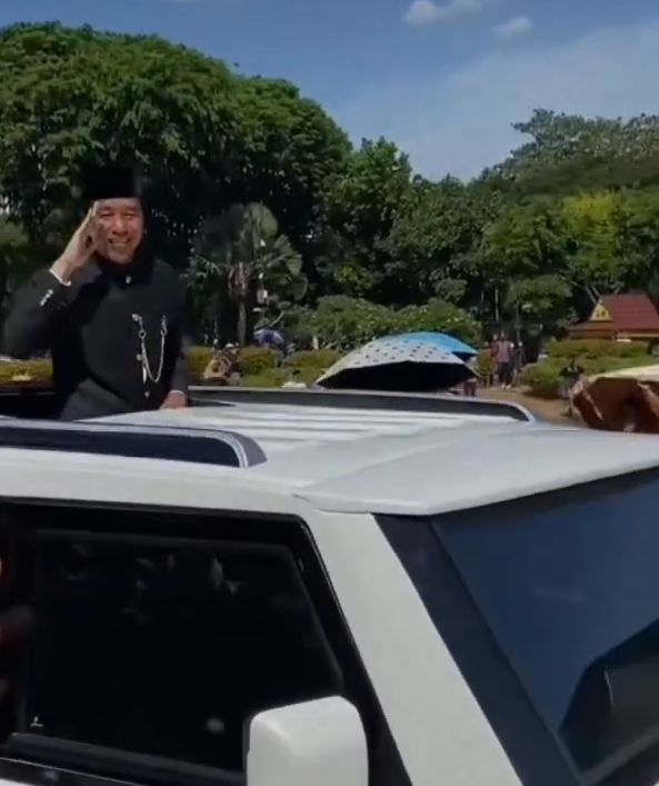 Jokowi menggunakan kendaraan Maung Garuda bernopol ‘Indonesia 1’ yang dinaiki Presiden ke-8 RI Prabowo Subianto usai dilantik.