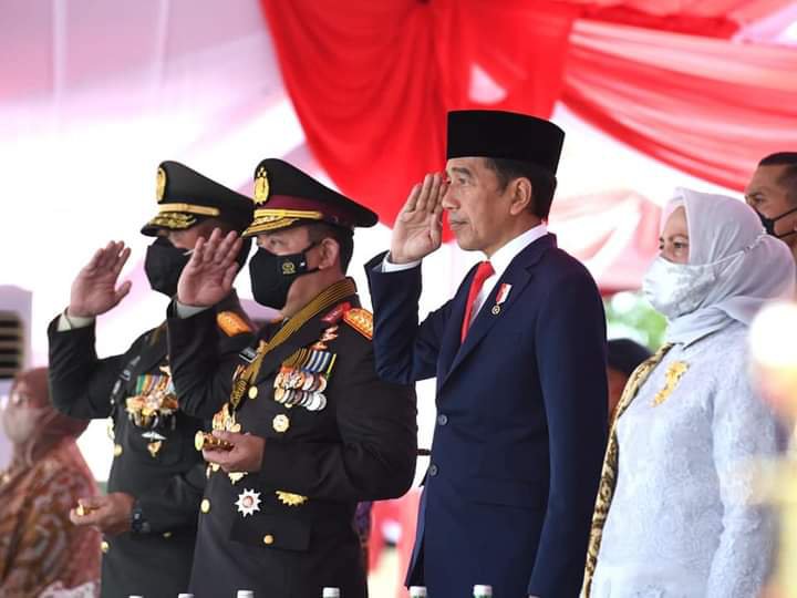 SEMARANG, JATENG | Presiden Joko Widodo memimpin jalannya Upacara Peringatan ke-76 Hari Bhayangkara Tahun 2022 yang digelar di Lapangan Bhayangkara, Akademi Kepolisian, Kota Semarang, Jawa Tengah, pada Selasa, 5 Juli 2022. Dalam sambutannya, Presiden memberikan apresiasi atas kerja keras yang telah dilakukan Kepolisian Negara Republik Indonesia (Polri) kepada masyarakat, bangsa, dan negara.