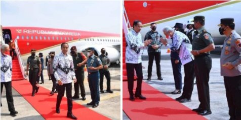 Setibanya di Pangkalan Udara Utama Angkatan Darat Ahmad Yani, Kota Semarang, Presiden disambut oleh Pangdam IV/Diponegoro Mayjen TNI Widi Prasetyono, Kapolda Jateng Irjen Pol. Ahmad Luthfi, Danlanal Semarang Kolonel Mar. Hariyono Masturi, serta Danlanumad Ahmad Yani Letkol Cpn Ihwan Okti Riyadi.
