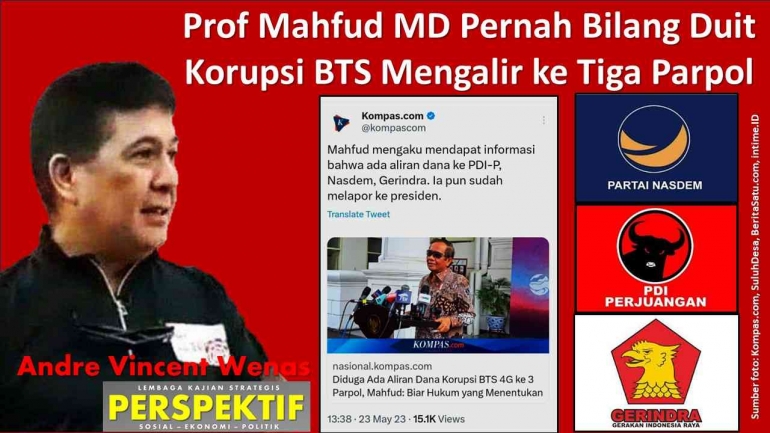 Waktu itu Prof. Mahfud MD memperoleh informasi bahwa ada aliran dana dugaan korupsi pembangunan menara BTS yang mengalir ke tiga partai politik (Nasdem, PDIP dan Gerindra).