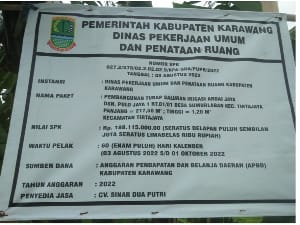 KARAWANG, JABAR | Proyek Pembangunan turap drainase di dusun Pulojaya Rt 001/001 Desa Sumurlaban Kecamatan Tirtajaya Kabupaten Karawang, yang dikelola oleh, CV. SINAR DUA PUTRI, dengan nilai anggaran 189.115.000,00, dari anggaran (APBD) Provinsi Jawa Barat 2022, diduga dikerjakan asal asalan dan jadi ajang buat Meraup Keuntungan