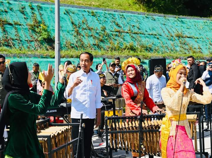 infoindonesiainews.com | SUMEDANG, JABAR – Alunan musik angklung turut menyambut kedatangan Presiden Joko Widodo di tempat peresmian Jalan Tol Cileunyi-Sumedang-Dawuan (Cisumdawu) di Kabupaten Sumedang, Provinsi Jawa Barat, pada Selasa 11 Juli 2023.