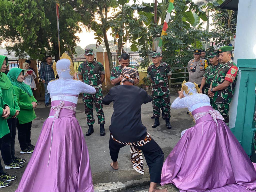 Danrindam dan rombongan tiba di Koramil 0607-11/Cibadak disambut Danramil beserta Staf dan Forkopimcam, diiringi dengan tarian penyambutan khas daerah Sunda.