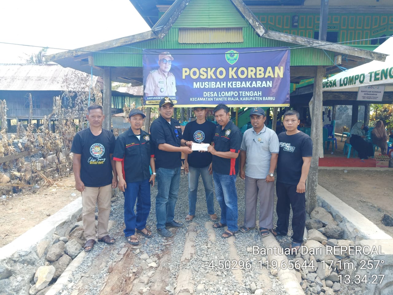 Disambut Kades Desa Lompo Tengah Arif Pabbiseang bersama Ketua BPD Fachruddin di posko penggulangan bencana di Ele